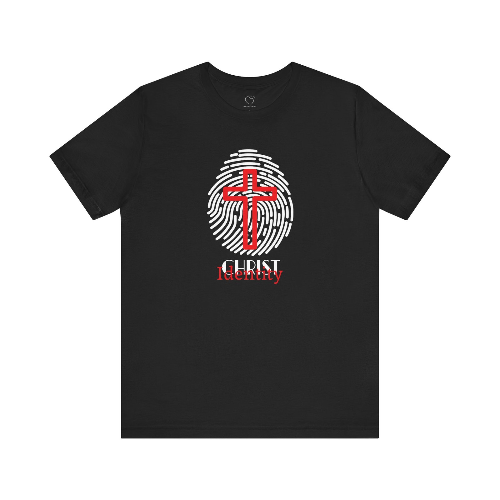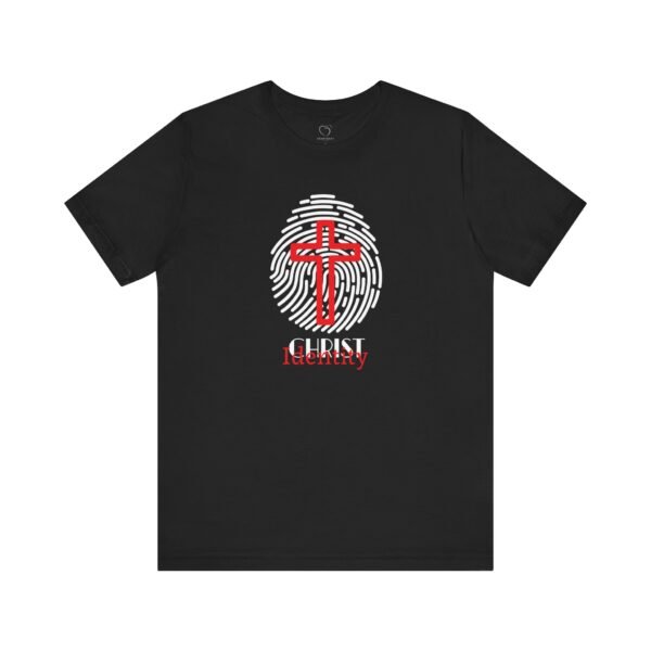 Declare your faith with style. The Christ Identity T-Shirt features a bold cross within a fingerprint design, a powerful reminder that your true identity is found in Christ.